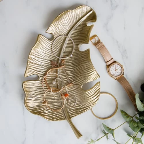 Artesà Assiettes Plates Plat De Service En Forme De Feuille En Aluminium Doré