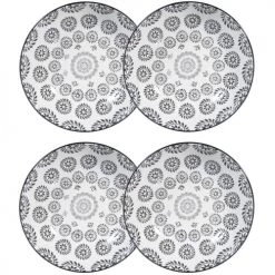 Maisons Du Monde Vaisselle De Noël Assiette Creuse En Grès Noir/blanc D 20 Cm – Lot De 4