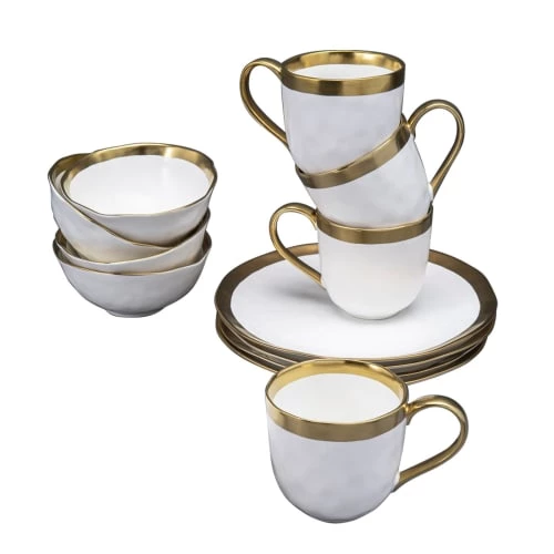 Maisons Du Monde Assiettes à Dessert Assiette à Dessert En Porcelaine Blanche à Bord Doré – Lot De 6