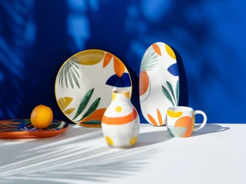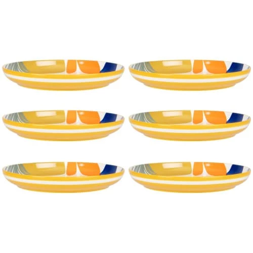 Maisons Du Monde Assiettes Plates Assiette Plate En Grès écru à Motifs Gris Anthracites – Lot De 6