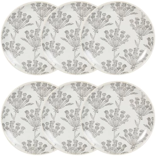 Maisons Du Monde Assiettes Plates Assiette Plate En Grès écru à Motifs Gris Anthracites – Lot De 6