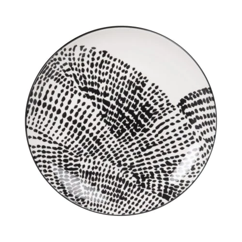 Maisons Du Monde Assiettes Plates Assiette Plate En Grès écru à Motifs Gris Anthracites – Lot De 6
