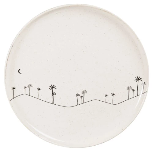 Maisons Du Monde Assiettes Plates Assiette Plate En Grès écru à Motifs Gris Anthracites – Lot De 6