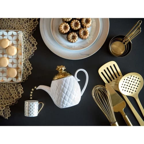 Maisons Du Monde Assiettes à Dessert Assiette à Dessert En Porcelaine Taupe Et Dorée – Lot De 6