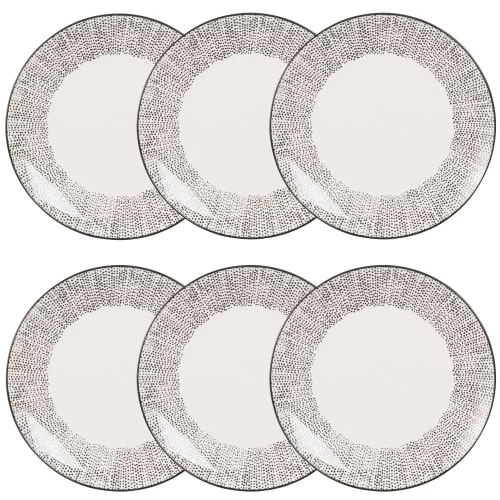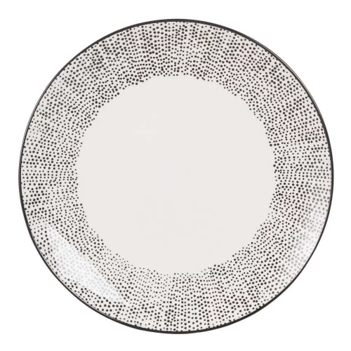 Pour finir par une délicieuse note sucrée, craquez pour l’assiette à dessert en grès blanc motifs à pois MEKONG. Vous apprécierez la touche fantaisie et moderne des bords, le centre blanc qui mettra en valeur la gourmandise de votre choix, et ces teintes qui insuffleront du raffinement à votre déco de table. Pour continuer avec la thématique black and white, accompagnez cette assiette à dessert d’une serviette noire et d’une cuillère blanche. Effet assuré !
