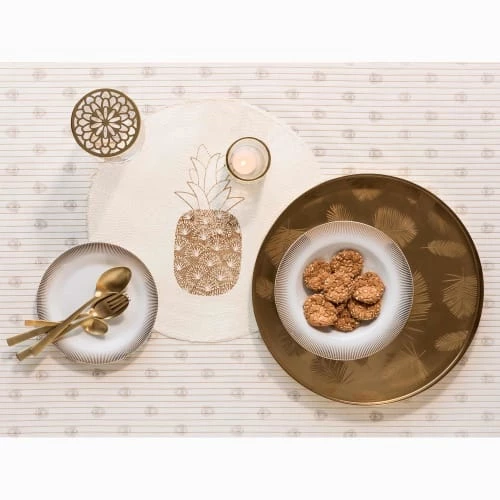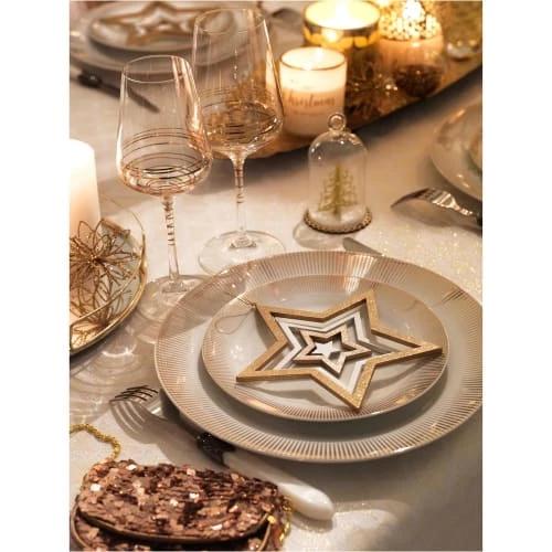Maisons Du Monde Vaisselle De Noël Assiette Creuse En Porcelaine Blanche Et Dorée – Lot De 6
