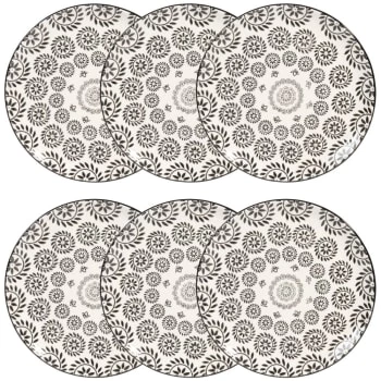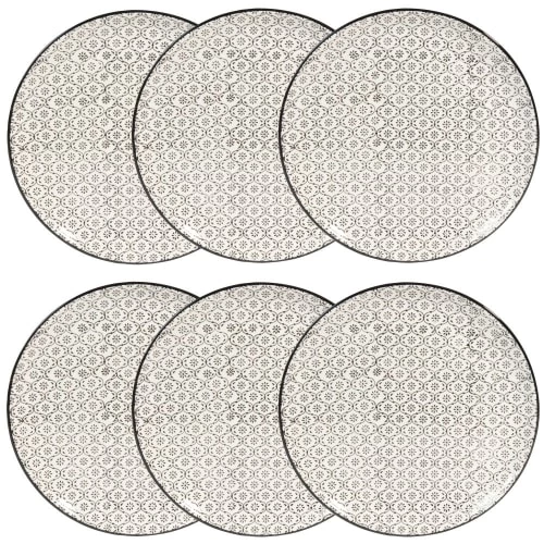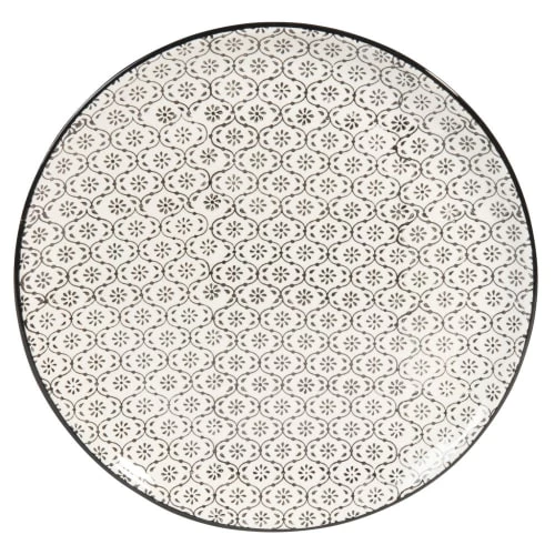 Idéale pour y déposer des gourmandises sucrées ou salées, l’assiette plate en grès blanc motifs graphiques noirs CHIANG MAI vous invitera à la rêverie. Elle dévoile un design moderne avec des bords légèrement relevés, et des motifs graphiques aux influences asiatiques. A la clé : une table décorée tout en subtilité grâce au parfait équilibre du noir et du blanc. Bon à savoir : cette assiette en grès résistera aux chocs thermiques puisqu’il passe au lave-vaisselle et au micro-ondes.