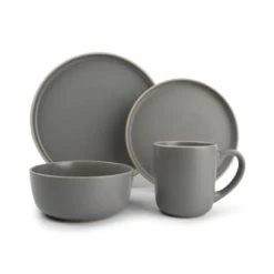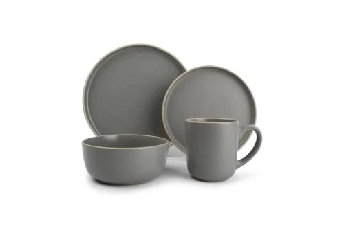 Maisons Du Monde Assiettes Plates Assiette Plate En Grès écru à Motifs Gris Anthracites – Lot De 6