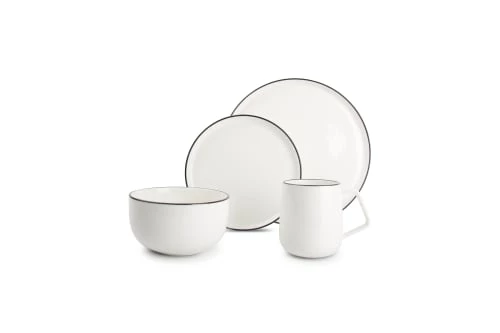 Maisons Du Monde Assiettes Plates Assiette Plate En Grès écru à Motifs Gris Anthracites – Lot De 6