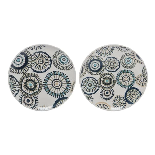 Ensemble de deux assiettes à dessert CANDYrondes avec des motifs circulaires bleus abstraits qui rappellent les fleurs. Ces assiettes au design coloré conviennent pour présenter vos apéritifs et desserts lors de grandes tablées.Elles s’accordent parfaitement avec les autres produits de la gammeCANDY. Existent aussi en format rectangulaire.