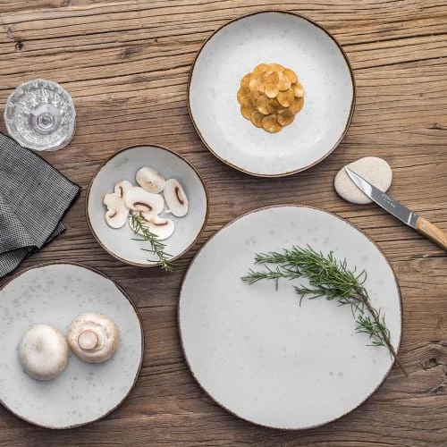 Maisons Du Monde Assiettes Plates Assiette Plate En Grès écru à Motifs Gris Anthracites – Lot De 6